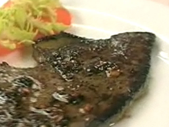 Рецепт жареной говяжей печени.Состав:печень, соль, перец, масло, лимонный сок, петрушка, чеснок.